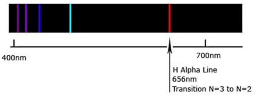 In the early 20th Century Niels Bohr developed his famous “quantum” model of the Hydrogen atom that could quantitatively explain the formulas of Balmer and Rydberg. Hydrogen is the simplest atom, comprised of a heavy positively charged proton and a light negatively charged electron. In Bohr’s theory, the electron could only orbit the proton in discrete orbits, drawing upon Max Planck’s discovery in 1900 of the quantum of energy associated with light. This is what Bohr said in his 1913 paper: “Whatever the alteration in the laws of motion of the electrons may be, it seems necessary to introduce in the laws in question a quantity foreign to the classical electrodynamics, i. e. Planck’s constant, or as it often is called the elementary quantum of action.” Planck and Bohr knew that the “classical electrodynamics” of particles and light from Newton and Maxwell was incapable of explaining the observed facts about atomic spectra. The principle Bohr used was to invoke only “orbits” that had very specific integer multiples of rotational angular momentum measured in suitable units of Planck’s quantization constant introduced in 1900. The Balmer H-Alpha line corresponds to a “quantum jump” between the orbit with integer 3 to the one with integer 2. Given the known value of Planck’s constant, the wavelength had to be 656 nanometers. This may sound very abstract, mathematical, and obscure, but something new was afoot and Bohr was on the right trail. While his atomic theory is now known to be obsolete and has been supplanted by the modern quantum theory of the atom, it got the basics right and proved to be an important step in understanding what was needed in the development of the proper Quantum Theory of matter.