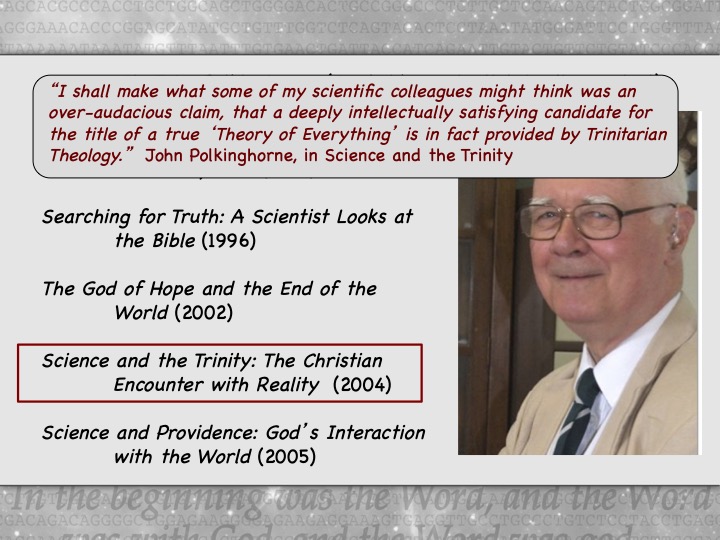 - Sir John Polkinghorne, in his book Science and the Trinity, says the following: “I shall make what some of my scientific colleagues might think was an over-audacious claim, that a deeply intellectually satisfying candidate for the title of a true ‘Theory of Everything’ is in fact provided by Trinitarian Theology.”