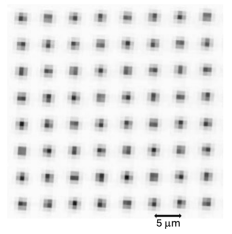 Figure 2 shows a low resolution “atom microscope” image of 64 strontium atoms placed in an 8 by 8 array spaced 5 micrometers apart (0.005 millimeters).[14] Scientists now routinely confine individual atoms in atom traps and place them in ordered arrays precisely where they want them[15] and image patterns of a few to many thousands of individual atoms. Many scientists around the world are trying to make a “quantum computer” or “quantum simulator” using such arrays, where each individual atom serves as a “quantum bit” that can be entangled with other quantum bits in a “quantum” way that no possible Newtonian “classical particles” could possibly do. Einstein was bothered by quantum entanglement, calling it “spooky action at a distance,”[16] but the actuality of such action has been repeatedly verified in the laboratory, and three pioneers were honored by a Physics Nobel Prize in 2022.[17]